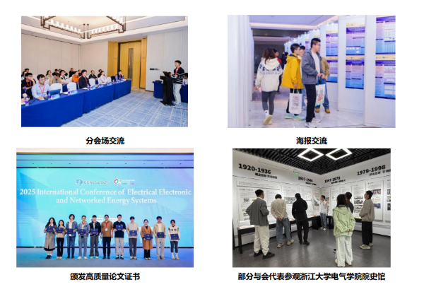 本次会议围绕智能电网、交通能源融合发展、能源互联网、电力电子、电力传动研究方向展开交流,设置了23个专题论坛以及海报交流,涵盖了新型电力系统及其应用、交通自洽能源系统及其相关技术、电力传动及其控制技术、电力设备绝缘材料与绝缘技术等多个技术领域。为鼓励学术创新,会议期间对高质量论文颁发证书。会后,部分参会代表参观了浙江大学电气工程学院院史馆。