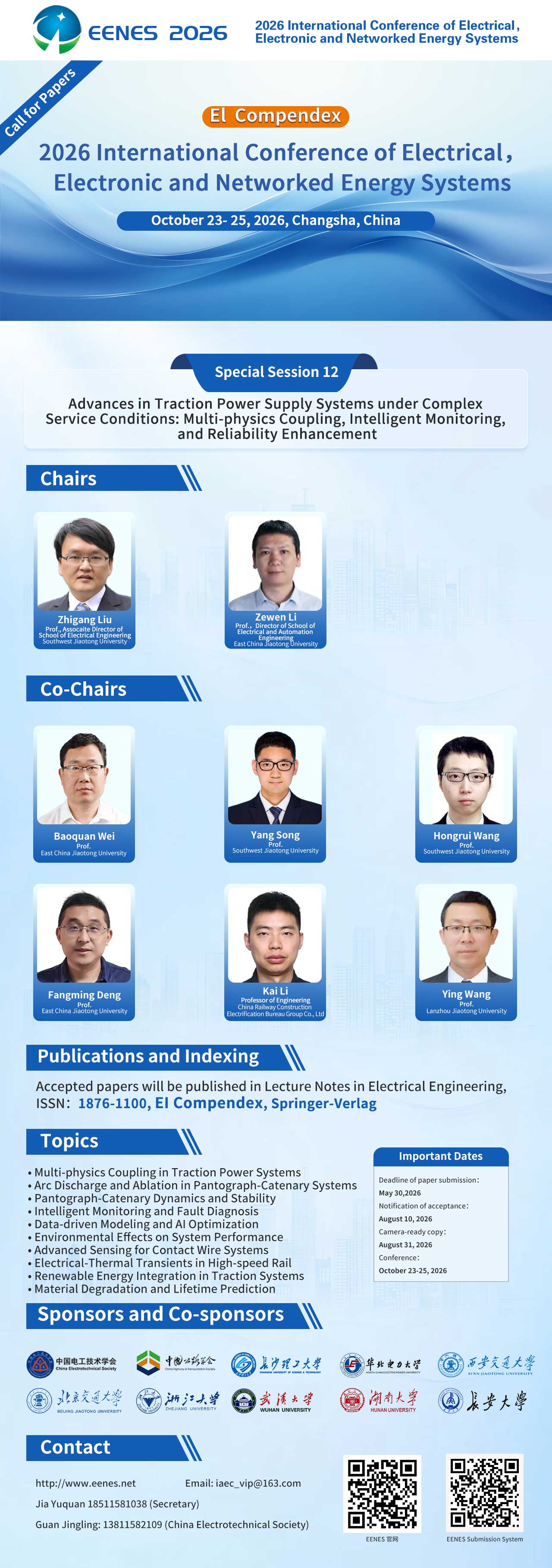 【EI检索】轨道交通电气化与牵引供电系统前沿技术 | EENES2026 Special Session 12征文