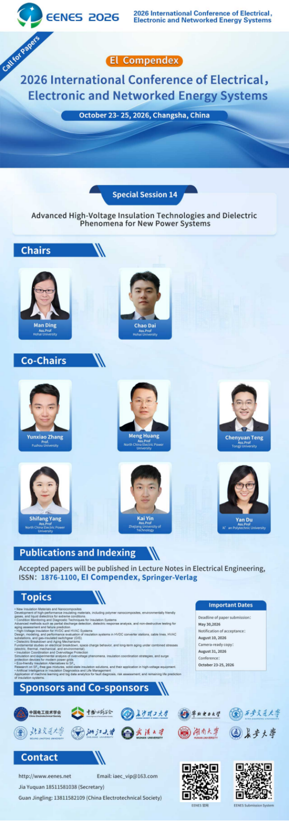 【EI检索】面向新型电力系统的先进高压绝缘技术及介电现象 | EENES2026 Special Session 14征文