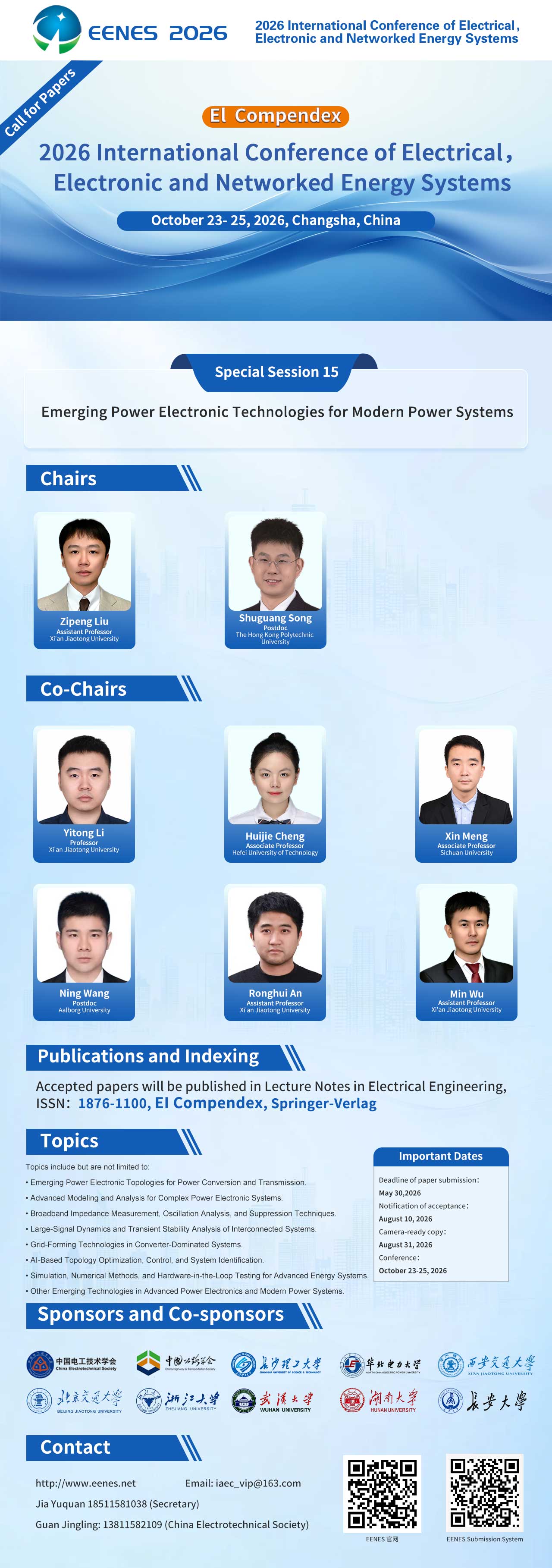 【EI检索】新型电力系统中的新兴电力电子技术 | EENES2026 Special Session 15征文