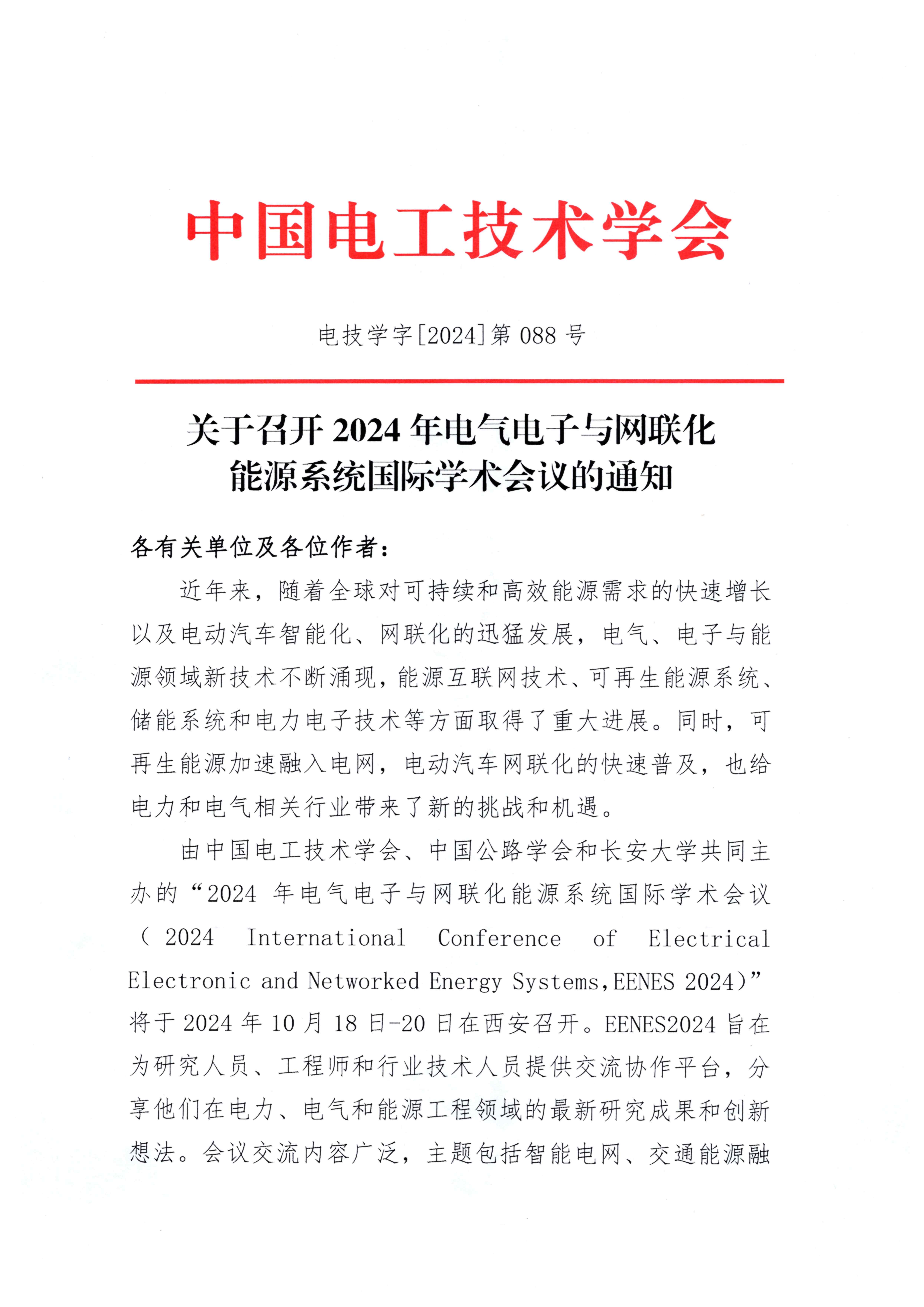 关于召开2024年电气电子与网联化能源系统国际学术会议的通知
