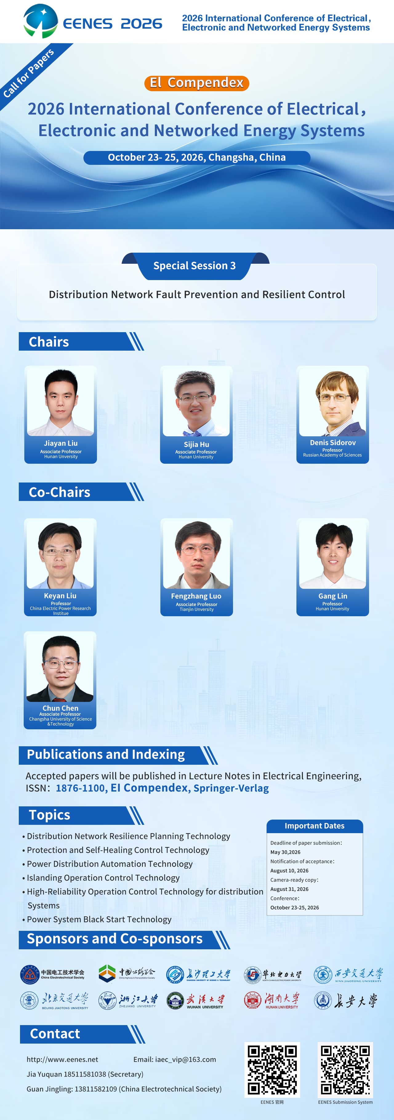 【EI检索】配电网故障防御与韧性调控 | EENES2026 Special Session 3征文