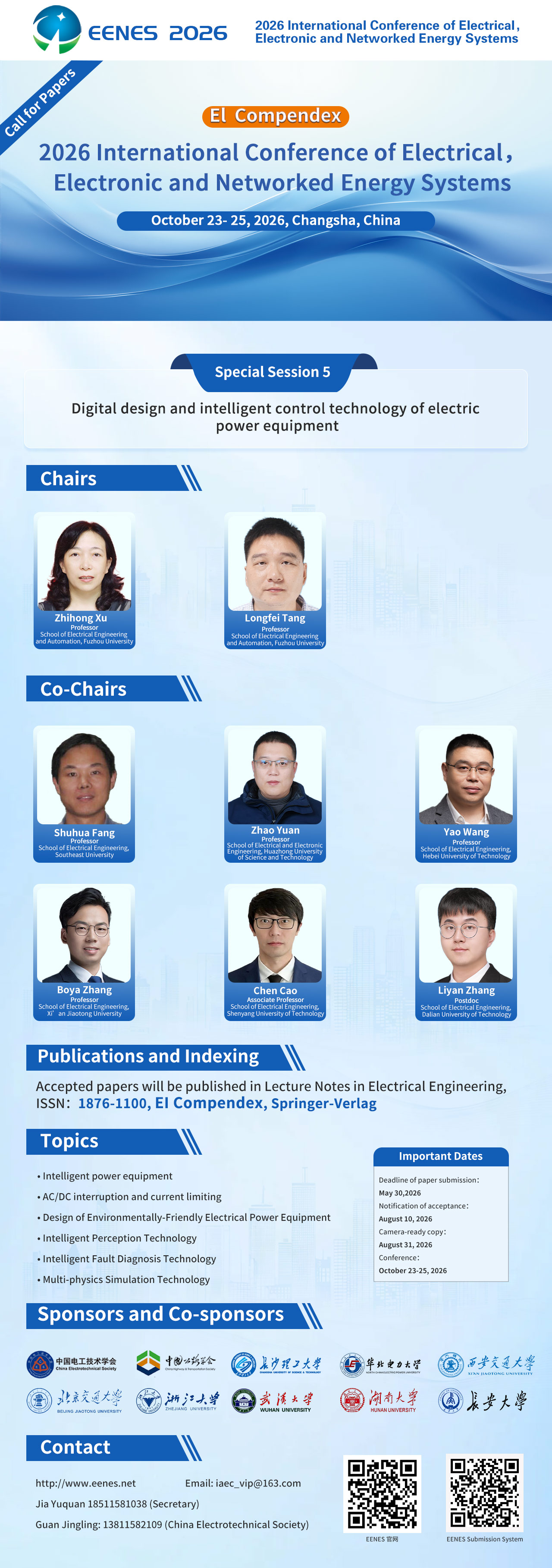 【EI检索】电力装备的数字化设计及智能控制技术 | EENES2026 Special Session 5征文