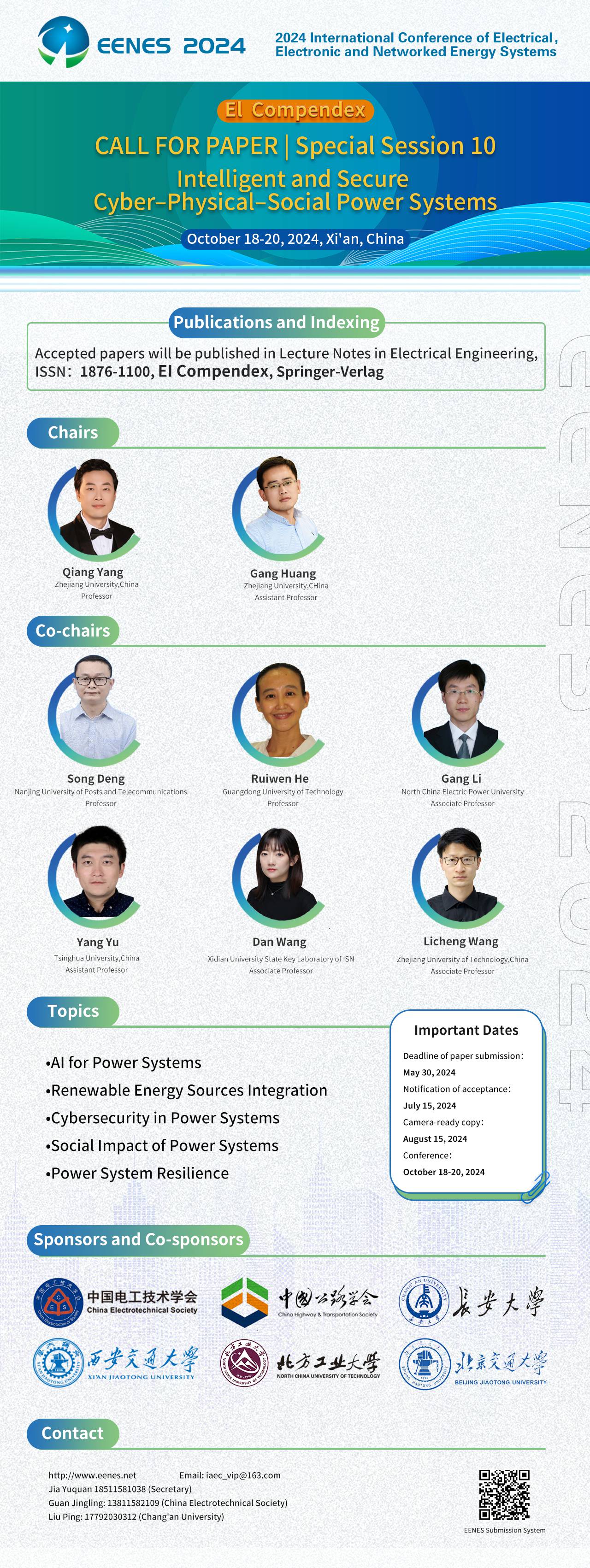 大会设置多个Special Session,其中Special Session 10 征稿如下,其他内容详见官网:https://www.eenes.net ,请您查阅!