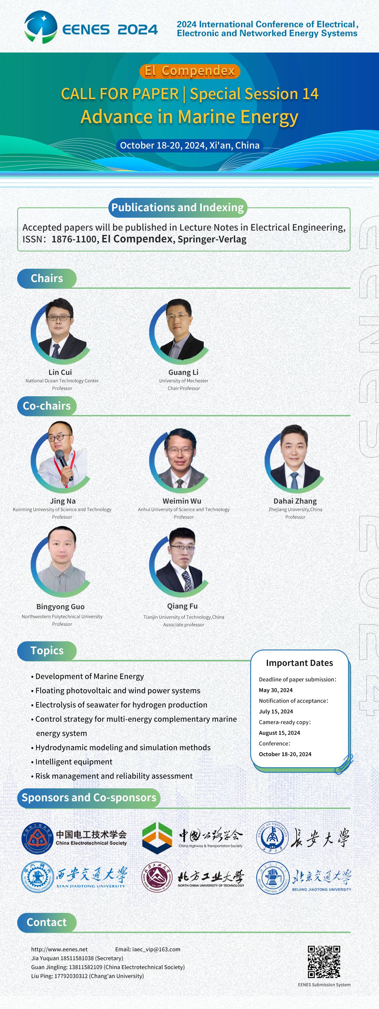 【EI检索,论坛主席:国家海洋能发展中心崔琳主任】海洋能研究进展|EENES2024 Special Session 14征文